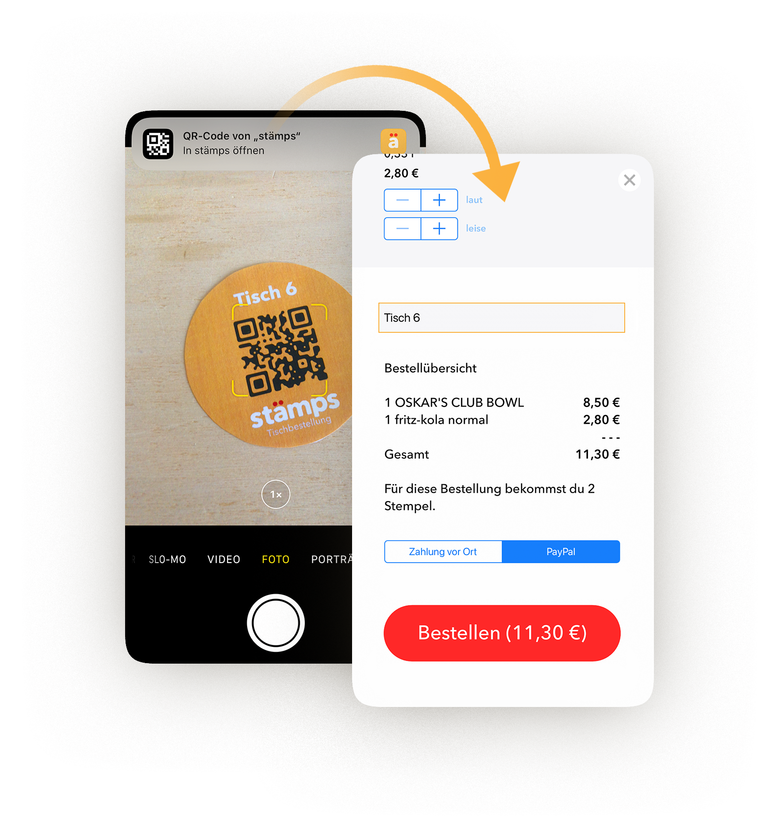 Hast du eine digitale Bonuskarte bei stämps, kannst du für nur 5 Euro mehr im Monat das Seat Ordering-Modul hinzubuchen. Deine Gäste können ganz einfach über die App bestellen, und wenn gewünscht auch gleich bezahlen. Das entlastet nicht